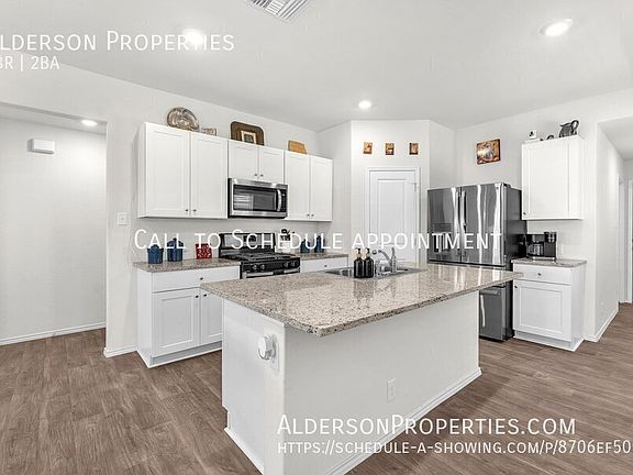 Welcome Home to this charming one-story home located in Cobalt Canyon. This conveniently located home features a gourmet kitchen which includes granite counter tops, black appliances and an open concept floor plan with the kitchen flowing to the dining room and living room. The primary bedroom features an ensuite bathroom with a large walk-in shower and spacious walk-in closet. The backyard covered patio is the perfect place to relax enjoy friends or family.