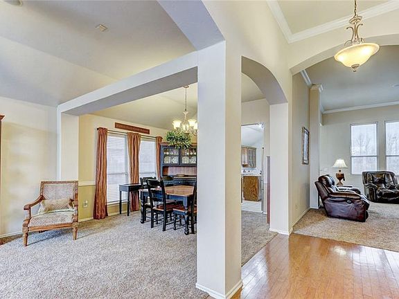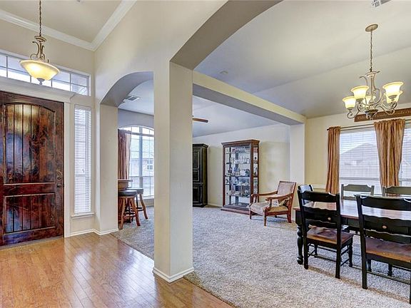 What a gem! Wonderful, move in ready home situated on a large cul-de-sac lot, offering 3 bedrooms, a 3 car garage with in-ground storm shelter, formal dining area, formal living, family room, eat in kitchen with island, and a study! Some wood floors, vaulted ceilings, and french doors add charm and warmth. Both bathrooms were renovated in 2016, new carpet was installed at time of listing, and the roof was replaced in 2015. The extra large back yard provides a gazebo and a storage building. Carrington place is a great place to call home, with a neighborhood pool and club house and conveniently located near I-35, the hospital, great schools and more!