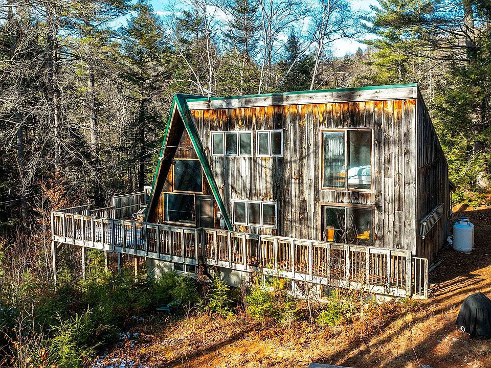 This charming cabin in the woods is the perfect retreat for those seeking adventure and tranquility alike. Surrounded by 10.7 acres of forest, it offers a cozy haven just a short walk from the breathtaking Pikes Falls and is 5 minutes to Stratton Mountain, ideal for skiing enthusiasts during the winter months. In warmer weather, the nearby trails beckon hikers and mountain bikers to explore the stunning landscapes and vibrant wildlife. With three spacious bedrooms and two baths this home comfortably accommodates multiple friends and guests. The rich history of the area, formerly enjoyed by many who moved from the Cities in the 40's to come to Vermont and live off the land, adds an intriguing layer making it not just a getaway but a connection to the past. Whether you're passionate about outdoor activities like maple sugaring or simply wish to unwind with a book by the woodstove or roaring firepit out back, this special offering is a delightful escape into nature's embrace. Deed, tax map and lister card are for 48.4 acres. This 10.7 acres is being subdivided off of the larger piece. Road frontage is approximate. Original Aframe was built in 1962 by earlier family and addition in 1976 with some upgrades C.2020 . Furnished and sold "AS IS". Some protective covenants and restrictions will be added soon.