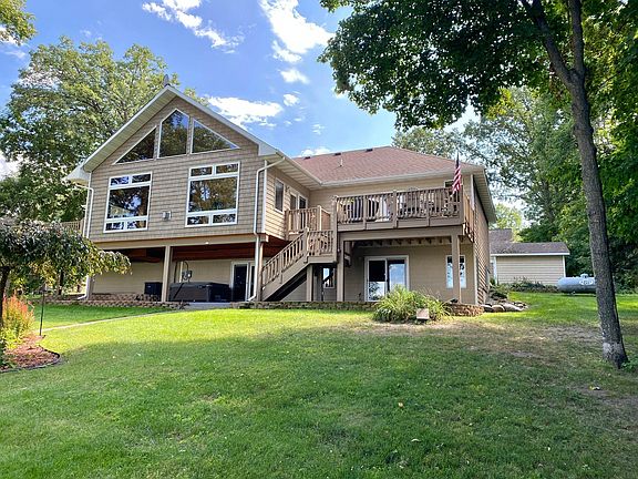 Welcome to Pine Point, arguably the best fishing on Leech Lake! This stunning home is located in an upscale neighborhood and features vaulted ceilings, granite countertops, hardwood flooring, gas fireplace, lakeside wall of windows with expansive views of Leech Lake, lakeside master suite, separate lakeside “mother-in-law” suite, walk-out lower level family room area with an additional recreation room, 2 lakeside decks, attached 2-stall garage PLUS a 30’ x 32’ detached heated and insulated garage, low maintenance siding and more. Located in an upscale neighborhood, the property itself boasts 115’ of rock/sand frontage with amazing views and also features a harbor slip in the Pine Point Harbor Association. Enjoy the aerial video!
