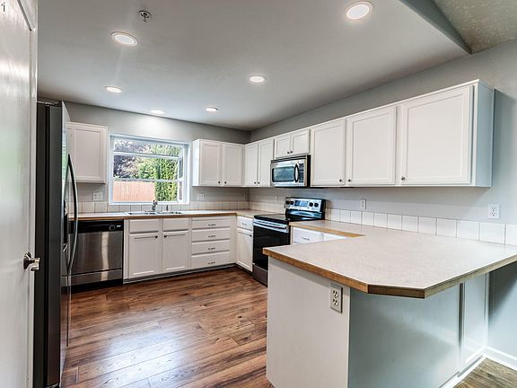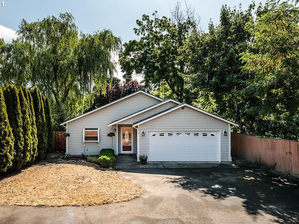 Cute 3 bedroom/2 bath home on private flag lot is ready for you to enjoy! Spacious great room, perfect for entertaining has 3 new skylights and a slider out to a shaded backyard. The open kitchen has stainless appliances and a breakfast bar. Large Master with full bath and slider to yard. Updates include water resistant laminate, A/C, blinds and lights.