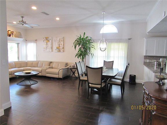 Once you open the front door, you will discover a beautifully remodeled home which has been transformed with meticulous upgrades creating a superbly appointed, open floor plan. Porcelain wood grain tile floors through out the house with new baseboards, crown molding in every room emphazing the cathedral or ten foot ceilings. The kitchen has been opened into the dining/living area which features new cabinets, high grade granite countertops, new wiring & lighting, new Whirlpool stainless steel appliances & large island for seating. Living room features an electric fireplace with built-in shelving & new recessed lighting. The master bathroom as had complete remodel with all drywall replaced, vanity, sinks, lighting, shower fixtures, glass door and high end travertine tile. Guest bathroom as new drywall plus new vanity, fixtures, lighting and shower, floor has high end marble tile. An amazing outdoor living area which has new pavers - an under cover area plus an outside space with magnificent feature water wall, BBQ grill area and lighting with a large seating area. New electric wiring, extra lighting installed, 4 zone irrigation, shut off valves. 2019 new A/C, water heater and exterior painted. Windows replaced. Walk to restaurants, grocery, bank - close to everything. About six miles to the beach. Such a convenient location!
