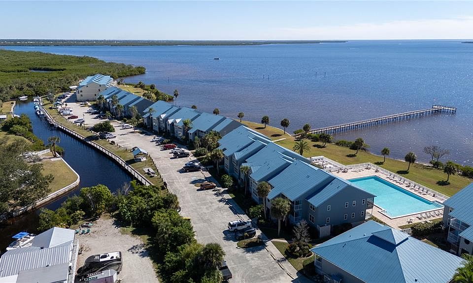 Waterfront condoDirect gulf accessPrivate fishing dockModern coastal designHuge community lap poolFresh interior paintAvailable boat slips