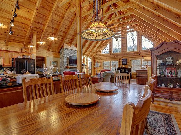 Logs sealed & re-stained Fall 2018;New GAF Timberline HD roof sytem Fall 2019 w/ 50 yr material warranty & 15 yr leak warranty; Home inspec. passed Sept. 2019;Seller will pay 1 yr home warranty at closing .Elegant living in this Heritage Log Cabin nestled in 3.22 private acres. Great room welcomes you w/ high beamed & vaulted ceilings, wood floors, floor to ceiling see-through stacked stone fireplace & soaring windows to view all of nature's beauty. The kitchen has granite counters,separate island w/prep sink,custom cabinetry,copper accented lighting & a large pantry. All Bedrooms have fireplaces, screened porches, XL walk-in closets & private bathrooms w/ custom tiled showers & heated tile floors. Lower level has a Family room w/ wet bar that opens to an add'l 2-tier deck for gatherings.