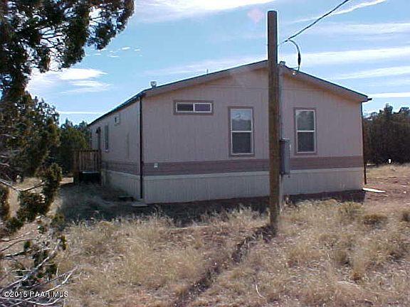 This immaculate, well kept, ready to move in home with 20 acres offers remote privacy, yet is not completely off the grid! It is well treed, sitting at 5640 feet elevation and is equipped with electricity! This home has the comforts of propane heat and central air, along with ceiling fans and the beauty of raised ceilings with some skylights for extra lighting or those starry nights! Included with the property is a storage shed and a water storage tank. This parcel also borders State Land giving you hundreds of acres to explore! This property also has great road access with it being mostly black top and then some gravel! It's also less than 7 miles from the Interstate and just 19 miles from the Historic Route 66 town of Seligman!