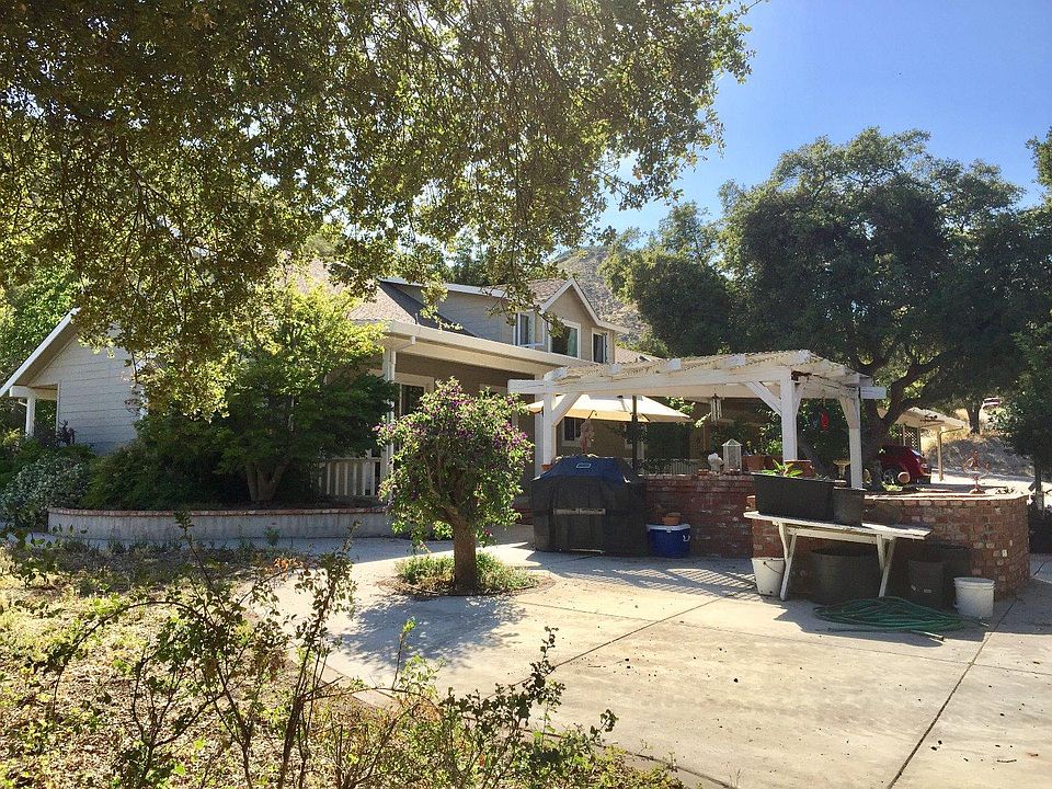 Super country property constructed by custom home builder nestled on 5 acres, surrounded by oaks, in this peaceful canyon of custom homes just off Pine Canyon. Lots of hand-crafted wood built-ins throughout the home, crown moulding, brick fireplace & more. Extensive bonus storage rooms, craft room, separate office, enormous garage/workshop, lovely outdoor spaces for BBQ's and listening to water fall.