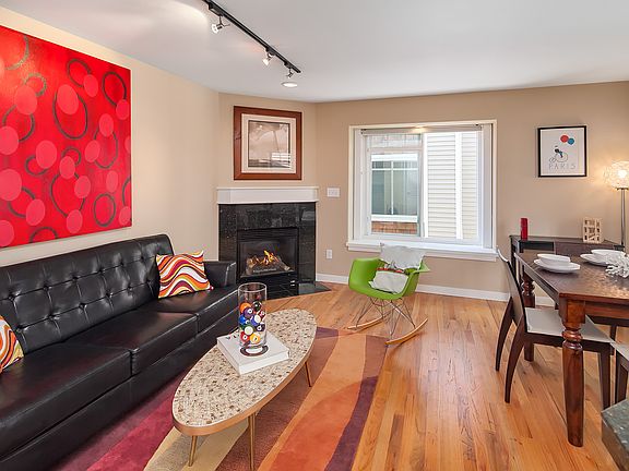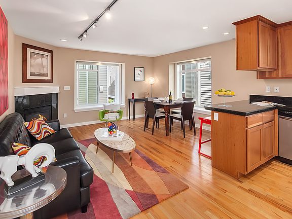 Dynamic living in Wallingford. Charming and bright townhouse boasts hardwood floors, picture windows, fenced lush garden and a big garage for car & storage. The main living space is open with window seats & gas fp. Kitchen offers big cherry cabinets, ss appliances and eating bar. A 1/2 bath on the main level. Upstairs are 2 generous bedrooms and a full bath. Superb location for city commuting. Access great stores, restaurants, parks and schools. Walkscore 96. 12 months. Application is taken through Urban Dwell. And completed online with Tenant Verification Services. cats and dogs up to 30#
