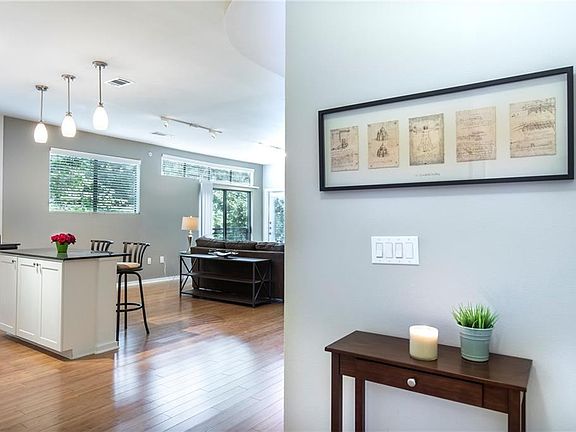 Light and bright corner unit at Nikko with a soft-contemporary open floor plan. One level home with lots of light and tree top views from the many windows. Enjoy the private corner balcony. Wood floors, walk in closets, stainless appliances, granite counters, great layout with lots of storage and garage parking for 2 cars in a secured building with no stairs! Boutique condo that is set on a tree lined street in North Oak Lawn. Walk to Whole Foods, Highland Park, shops and restaurants. Convenient to UTSW, Design District and Uptown.
