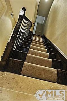 Entry into the 2 bedroom, 2 bath home, provides a dramatic backdrop with travertine flooring leading to a tasteful staircase with hardwood stairs and an iron baluster. This light and bright town home features a neutral color palette with 2 story ceilings in the living area and an abundance of natural light. Located in a gated small complex just minutes from Highland Park. SS appliances. 2 car garage. Spiral staircase leads to large covered deck.
