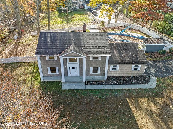 Cozy, private, and serene are just a few words that describe this custom colonial that's nestled atop a hill with views of Lake Lefferts in one of the most desired and sought out areas of town. Sitting on ~2 acres and completely updated in 2022 from top to bottom, this home features 4 bedrooms, 3 full baths, 2 half baths, brand new kitchen, original refinished hardwood floors, 2 magnificent brick wood burning fireplaces, sunroom, full basement w/half bath and wood burning fireplace and exit to the exterior, in-ground pool w/ brand new pool house that includes a half bath! Work in or like to travel to NYC? NYC bus stop is at the end of the street and the Matawan train station is just 2 miles away. Minutes away from all major highways and shopping/dining