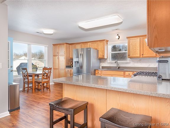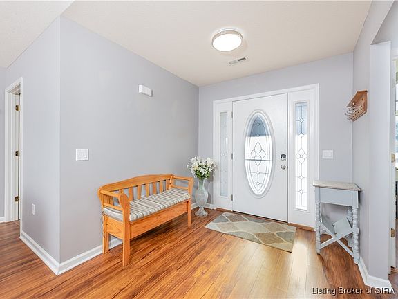 This is THAT HOUSE. That MOVE-IN READY, 3-bed, 2-bath, 2-car garage, open floor plan on a cul-de-sac in SILVER CREEK SCHOOL DISTRICT with a fenced yard house. But it's not just that house. It's also the updated, upgraded, excellent kitchen & baths with bonus space and fabulous features house. Take in the living area with valuted ceiling and LVP floors from the foyer. The family chef will love the eat-in kitchen with expanded & upgraded cabinets, breakfast bar, stainless appliances, and check out that upgraded GAS range. Bonus relaxation and entertainment space just ahead in fully finished & insulated three-season room. The updated baths are standouts with an oversized soaker tub in the main bath. Primary suite has updated bath with walk-in shower & walk-in closet. Backyard has huge wraparound deck & fence. Perfect SELLERSBURG neighborhood location close to everything without being in the middle of everything. Easy access to 1-65 (less than 2 mi. via Memphis) and neighboring communities. This home is well-maintained & worry free. New HVAC, 2018. New tankless water heater,2019. Water softener and purifier. New windows throughout in 2021 with lifetime warranty. Fence was new in 2022. Hunter Douglas Blinds. Keypad entry and exterior motion lights. Extra storage is available via drop-down stairs to the attic in the attached garage. Three-season room is non-conforming due to no heat return, though there is a blower vent. Measurements are approximate; check if critical.