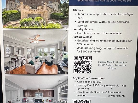 Welcome to your new home in the heart of the Central West End! This beautifully updated apartment at 4404 McPherson Ave blends historic charm with modern comfort. Enjoy spacious, light-filled rooms featuring high ceilings, refinished hardwood floors, and large windows that bring in plenty of natural light. The upgraded kitchen offers stainless steel appliances, granite countertops, and ample cabinet space perfect for cooking and entertaining. The apartment includes modern bathroom finishes, in-unit laundry, and central air for year-round comfort. Located on a quiet, tree-lined street, you're just steps away from Forest Park, award-winning restaurants, boutique shops, and the city's best attractions. Off-street parking and secure building access add extra convenience. Experience the perfect balance of classic St. Louis architecture and contemporary living No smoking in unit