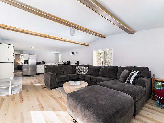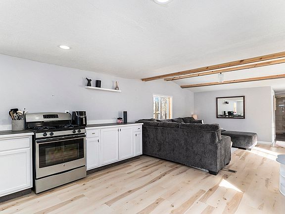 Nestled on 5 acres of secluded countryside, this charming 3-bedroom, 2-bathroom home offers the perfect blend of modern comfort and peaceful country living. Step inside to discover a beautifully updated, open-concept living space featuring exposed wood beams that add warmth and character. The spacious living room seamlessly connects to a bright and stylish kitchen, complete with ample counter space, stainless steel appliances, and sleek cabinetry—ideal for both everyday living and entertaining. The primary bedroom serves as a cozy retreat, with a private full bathroom with custom tile work that adds a touch of elegance. The additional bedrooms provide versatility, perfect for a home office or guest room. Outside, the detached garage offers ample storage and parking, while the 5 acres presents endless possibilities—whether you envision a lush garden, hobby farm, or simply a private escape surrounded by nature. This move-in-ready home is waiting for you to make it your own!