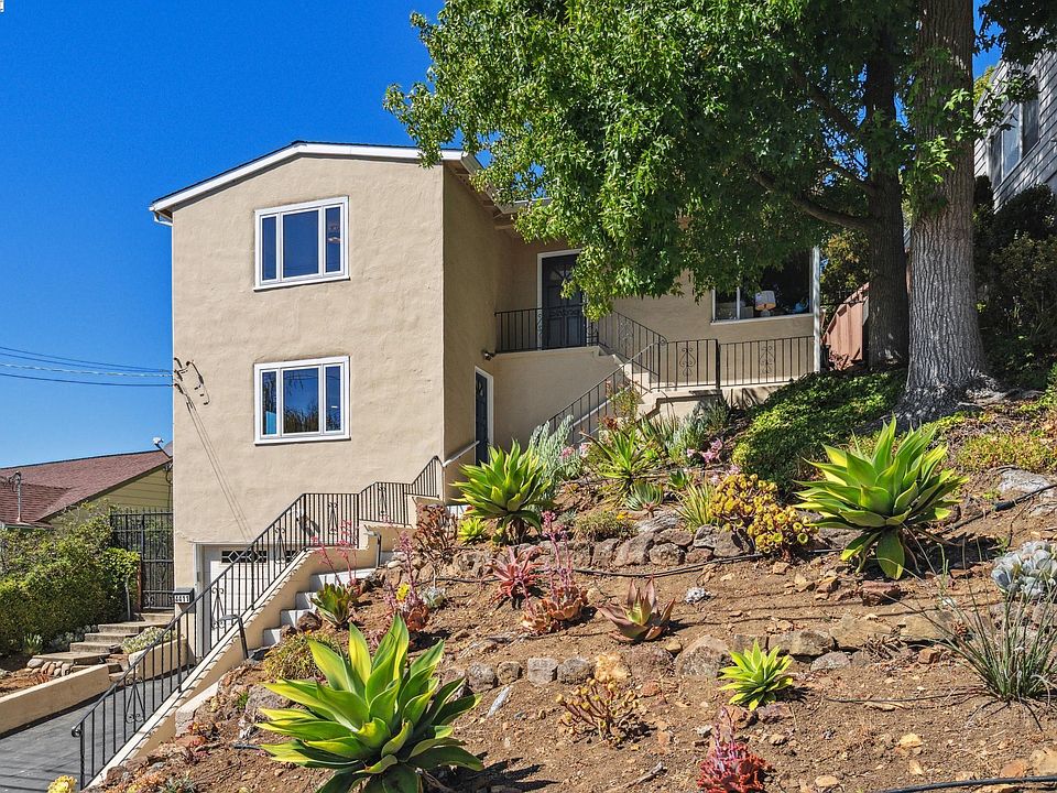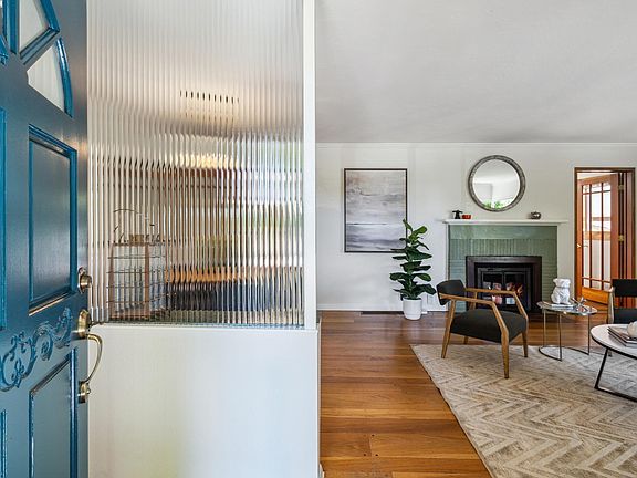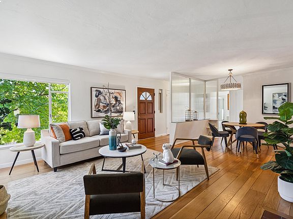 This warm and welcoming home features a total of 3 bedrooms and 3 bathrooms, with 2+ bedrooms and 2 bathrooms on the main level, and a separate 1-bedroom, 1-bathroom in-law unit on the lower level. Blending classic design with thoughtful updates, the main level offers comfortable living spaces accented by rich wood trim that adds natural elegance. The living and dining area, with its cozy fireplace, provides an ideal space for unwinding. The updated kitchen shines with light countertops, stainless appliances, and contemporary lighting, making it perfect for cooking and entertaining. The living area opens to a bonus room surrounded by windows and a skylight, offering a view of the beautiful oak trees and drought-tolerant garden, completing the home’s private and serene feel. The primary bedroom includes an ensuite bath with glass stall shower and solar tube for natural light, while the hall bath provides the bathtub. A separate in-law unit with 1 bedroom and 1 bath, along with a private entrance, offers flexibility for guests or an expanded in-home office. The spacious one-car garage provides ample storage and50 amp outlet for electric car charging. With close proximity to shopping, parks, and popular schools, this home is a unique blend of convenient comfort surrounded by nature