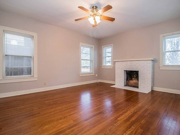 Spacious duplex with hardwood floors, large rooms, separate dining, and decorative fireplace. Central Air (electric) and Heat(gas).