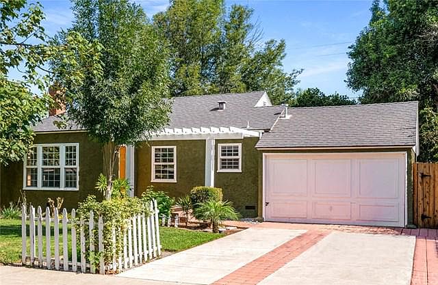 "Wood Streets" 1940's cottage is super cute and turnkey, with brand new interior paint, updated kitchen, and updated bathroom with brand new vanity and vessel sink. Central air/heat, double pane windows, formal dining room with a convenient pass-thru to the kitchen which makes these two rooms seem that much larger. Classic coved ceiling in living room with gas and wood-burning fireplace, as well as convenient hidden storage in the window seat. The three bedrooms are really quite large for a home of this era, with ample closet space, and charming French doors throughout the home which give it a light and bright sunny cottage feel! Indoor laundry off the kitchen, as well as a vintage telephone shelf in the hallway. In addition to an attached over-size 1-car garage, there is a large brick patio and grassy area in the back yard with room for gardening. Mature grapefruit tree offers plenty of shade and fruit. Another desirable Wood Streets home that will sell this weekend, despite the 3-digit temperatures! Don't hesitate!
