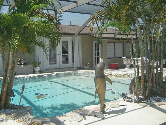 Desirable Orchid area. This charming home has a spacious and inviting floor plan. All the French doors lead to the tropical pool with beachy entry in one of the largest lanais you will find. A private and quiet secluded getaway or year round home featuring fenced yard, screened pool with low maintenance landscaping. Interior features include laminate flooring and tile in granite kitchen and dining room. There are 2 bedrooms plus a 3rd room currently used as an office and 2 bath . The proximity of shopping and everything happening in South Cape including bike nights, art festivals, Farmers Market, Yacht club, restaurants, clubs, parks and shopping conveniently located near the Cape Coral bridge for easy access.