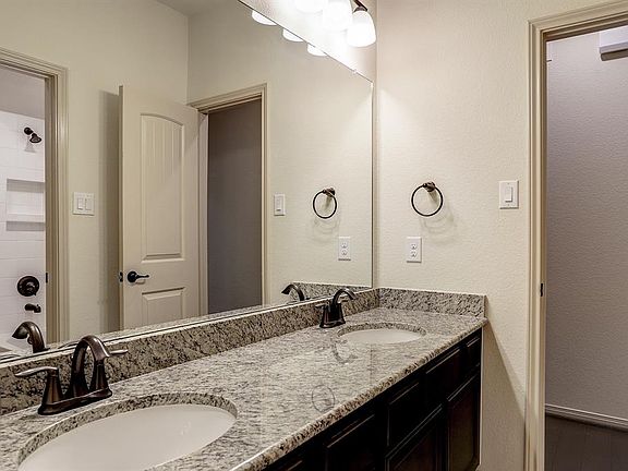 Located in the desirable gated community of Sanctuary Veritas this Dr Horton single story will amaze you! Large lot and no back neighbors makes this a great find in the area. The layout is perfect and thoughtful with tons of natural light in all the rooms. Very lightly lived in and meticulously maintained it is move in ready. 3 car garage and a covered patio are some of the attributes that you will notice set this house apart. The patio is plumbed and lined for an outdoor kitchen later on. The natural light continues into the master bedroom suite and huge bathroom with separate vanities. The secondary rooms are great sizes and have a double sink jack and jill bath large enough for all families. Close to the Exxon campus and zoned to Klein ISD schools this is the one you want to call home, come see this gem!