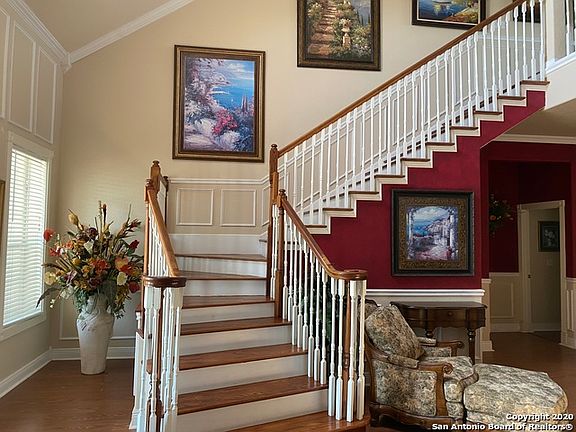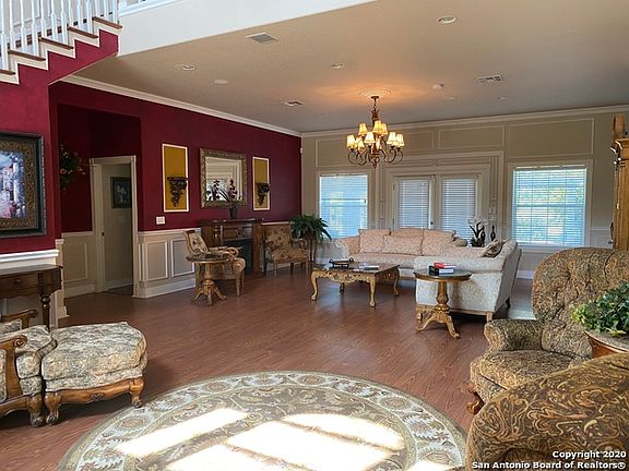 Outstanding opportunity to own a beautiful mansion, that's very well-built and has great bones. You'll love to cook in this open concept kitchen, with its many drawers, desk area, massive pantry, breakfast nook + tons of cabinetry. The Great room with its grand floating staircase is a wonderful scene for a wedding, family holiday pictures, piano concerts... you name it. Elegant dining room, in which you'll love to entertain. So many lovely patios + balconies under this beautiful red metal roof. Gorgeous home. 5 car garage (3 + 2), driveway turnaround area for cars and easy parking. Iron fencing. 3rd-floor game room. Big sunroom. Tons of bedrooms + baths. This is a bargain. Priced way below tax appraisal. Nice level acreage lot adjacent also for sale. MLS 1494388. Why not plant a vineyard + combine it w/a wedding venue + tasting rooms?!