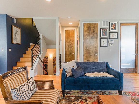 Light filled, south side duplex with open and functional floor plan is well cared for with upgrades. The main level is open and spacious with a living-dining-kitchen layout and including the office/guest bedroom (conforming), powder bathroom and kitchen pantry. From east to west the second level has the master suite with walk-in closet and 5 piece bathroom (marble tile and quartz counters), laundry closet with stacked front-load machines, two bedrooms and another full bathroom. The top (3rd) floor offers a spacious and sunny flex space, powder bathroom and a wet bar with mini-fridge inside, and a south-facing wrap-around rooftop patio with room for furniture on both east and west sides. The full, finished basement with tall ceilings includes another guest bedroom, full bathroom, a large living area and plenty of storage! Upgrades include exterior landscaping improvements (paver path and garden beds, 4' wrought iron front yard fence), added kitchen cabinets and counter space on the opposite wall, and a long, deep, floor-to-ceiling built-in with cabinets and open shelves in the basement. Family-packed block with lots of kids! Just 2 short blocks from the Tennyson St retail (countless shops, cafes, dining and breweries), 2 blocks from the Berkeley Lake Park, easy highway access, 10 minute commute to downtown and 20 minutes to the mountains!