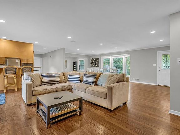 RARE OPPORTUNITY!! SPRAWLING ALL BRICK RANCH IN DESIRED EMPIRE ESTATES! Beautiful hardwood floors throughout. Open Floor Plan with Living, Dining and Family Room flowing seamlessly. Kitchen includes stained cabinets, solid surface countertops and convenient built-in oven. HUGE Patio off Family Room is Perfect for hosting Summer BBQ's! Bonus-buried power lines! Primary Suite with updated en-suite has dual granite topped vanity and shower. 2 more bedrooms and updated 2nd bath complete the main. Laundry is off garage and includes a partial bath. HUGE unfinished basement is great for storage or could be finished for additional living space! Pictures include a plan for possible renovation ideas. Updated windows throughout. Great and solid foundation. Fantastic location close to Meadowbrook Park, shopping and dining! HURRY IN!! WELCOME HOME!