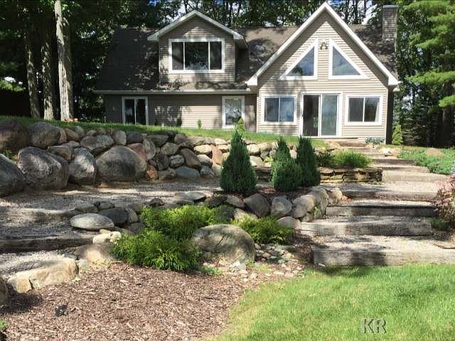 Wow! Look at this charming waterfront home on one acre, overlooking the north end of beautiful Pratt Lake. This lovely home sits back off the road, nestled in a wooded setting, overlooking the lake. Enjoy beautiful panoramic views of the lake from the yard & lakeside deck. Grab your lake chair & sit in the cool waters during the hot summer days, while burying your toes in the sandy lake bottom. The gorgeous home was updated & mostly rebuilt in 2010, featuring real hardwood floors w/many of the boards coming from trees taken right off of the property, towering vaulted ceilings, tall ledge stone natural fireplace, open kitchen area w/ breakfast bar design, main floor master suite & guest bedroom, hardwood steps & bannisters w/ raw iron spindles, loft balcony overlooking the living room, extra large loft room in the upper level w/ a full bathroom & so much more! All of this sits on a deep 1+ acre parcel on a dead end road w/ approximately 80 ft of WF on Pratt Lake. Must see home!