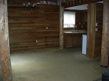 Cute 1.5 story cabin. Great for getaway or more. There is an unfinished loft area that is laid out for another potential bedroom or office. Main floor is a living area and small kitchen with a bedroom, utility room and 3/4 bath. There is a free standing wood stove and lots of windows. Needs some TLC. sold AS-IS