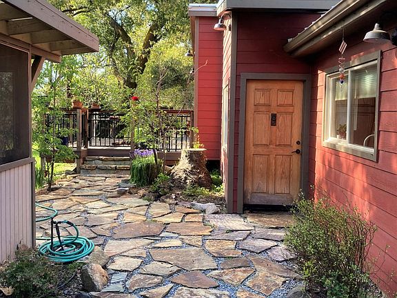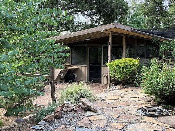 Don't miss this opportunity: Three Rivers fine living in seclusion and serenity on 7+ acres! Situated well off the road past a stone pillar security gate, this exceptionally well maintained and upgraded 4 bedroom 2 bath home is nestled amid the oaks with a local historic man-made water channel meandering through the property. Plenty of land to build an accessory dwelling unit, pasture horses, hike your private hillside for views or relax and enjoy the sound of the nearby river. Though feeling secluded, it's only 3 miles to town and a short drive to the entrance of Sequoia National Park; this could be your prized first/second home or vacation rental investment. A large skylight bathes the updated, well-appointed kitchen in ample natural light and with the kitchen being open to the dining and living areas there is an open floor plan ambiance while the split-level design adds character and charm. Clad with rough sawn wood and boasting a granite rock woodstove hearth pad, the living and dining areas are cozy and cabin-esque. Love outdoor living? There is generous outdoor living space with a peacefully shaded deck and attached screened porch adjacent to the living room and 2 additional covered screened porches all perfect for relaxing, dining, socializing or entertaining. The Master bedroom offers direct access to one of the attached screened porches and features a sitting area outside the custom walk-in closet. Guest rooms feature custom desks, shelves and storage. Other updates include: high-end walk-in Master shower, Pella dual pane windows throughout with custom shades, wooden Anderson sliding glass doors, 7 years new metal roof and AC unit, new tankless water heater, blown-in attic insulation and additional insulation behind the updated fiberboard siding. A steel sided barn with covered RV/trailer stall is perfect to store your work/play equipment or convert to a shop. The fenced back yard with kennel make this home pet friendly. Schedule a viewing today!
