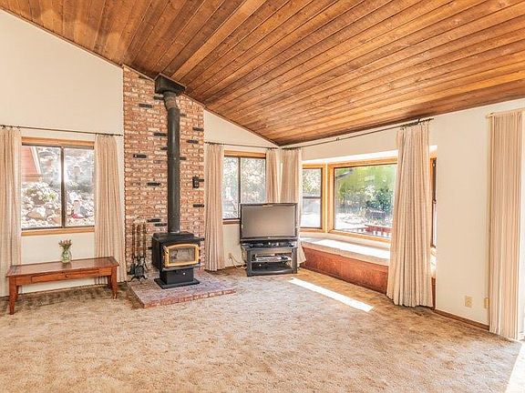 Sitting above it all and with views of the river and High Sierras is this lovely 3 bedroom, 2 bath home. The kitchen is open to the living room which has vaulted ceilings and many windows that allow the natural light to fill the room. The third bedroom has double doors that open up to the living space. The master bedroom is a sanctuary of peace and opens up to one of the private decks and private gazebo room. There is also an outdoor shower off of the master area. The master bathroom is oversized for luxurious comfort. Stairs lead down to the oversized garage and 600 sq. ft. of bonus space ( not included in the square footage). Outside is a wildlife paradise. There is an enclosed vegetable garden area and an amazing walking path along the perimeter of this 9+ acre property. The property backs of to the flume and the views all around the property are breathtaking.