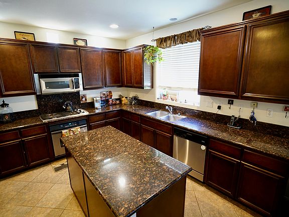 Fantastic well maintained 5 + 5 3,421 sq. ft. home on the west side. Perfect for a large or extended family. There is front and back yard landscaping with extra concrete and a small balcony off the master bedroom. The kitchen has granite counter tops, tile flooring, upgraded cabinets and an over sized center island. This home is very clean and has tile and wood-like flooring downstairs (except for the office). Wood-like flooring on the stairs and carpet in most areas upstairs except for the bathrooms and laundry. Oh man, can you believe this, almost every bedroom has it's own bath room. Mini retreat downstairs with its own bathroom, there's an office down stairs with a bathroom right next to it, the master has its own bathroom and the third bedroom upstairs has its own bathroom,...