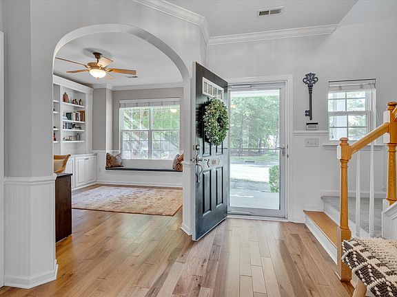 Welcome to this beautifully remodeled and highly desirable end unit townhouse located at 4412 Cherry Blossom Circle in Durham, NC. Built in 2003, this bright and well-maintained home offers a perfect blend of comfort and convenience. As you enter, you will find a spacious first floor with real hickory hardwood floors throughout. The study/library contains built-in bookshelves and cabinets, and the open floor plan allows for seamless flow between the living room, dining area, and kitchen. Beyond the dining area is a screened porch which is a perfect spot to enjoy your morning coffee or a sunset. The kitchen has been updated with quartz and granite counter tops, high-end appliances, and plenty of storage for all your cooking essentials. Upstairs, you will find two bedrooms, a bathroom, the laundry and the master suite. The bedrooms have large closets. The master bath features a generous walk-in closet, luxurious soaking tub, dual vanity, and a separate shower. On the lower level is the garage entry and a TV/entertainment/flex room. This townhouse also features an oversized two-car garage, providing ample space for your vehicles, a spare refrigerator, workbench, project/craft area and extra storage. With generous living space and huge garage provides plenty of room to spread out. Outside, you'll enjoy the convenience of townhouse ownership with little to no maintenance but with the beauty of mature trees and large common areas. Located in recommendable Hope Valley Farms, this home is close to shopping, dining, parks, YMCA, walking/riding paths and top-rated schools. Don't miss your chance to own this beautiful townhouse in Durham, NC. Schedule a showing today to see all this property has to offer.