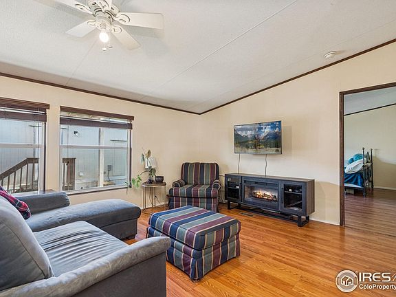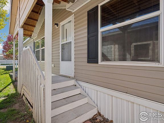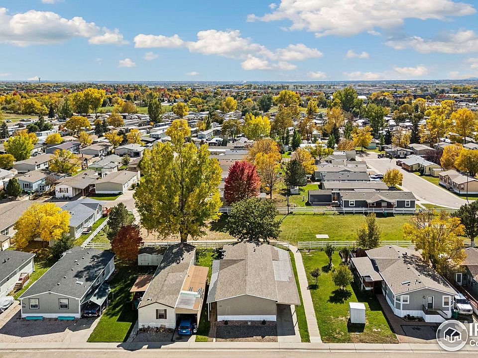 Welcome home to this spacious and move-in-ready 4-bedroom, 2-bath doublewide home in the desirable Cloverleaf Community! Perfectly situated next to the community park, this home offers both convenience and a great sense of space. Step inside to discover an inviting open floor plan featuring high ceilings, abundant natural light, and wood laminate floors that flow seamlessly throughout. The large kitchen provides plenty of room for cooking, storage, and entertaining, while the adjoining dining and living areas create a comfortable, connected feel. The primary suite offers a private retreat with a generous walk-in closet and ensuite bath. Three additional bedrooms provide flexibility for guests, a home office, or hobbies. Fresh interior paint adds a bright, welcoming touch throughout. Outside, enjoy the covered front porch-ideal for relaxing with your morning coffee or greeting neighbors. The carport offers parking for up to three vehicles, and the location right next to the park makes it easy to enjoy outdoor space just steps from your door. With quick access to Old Town Fort Collins, I-25, and nearby shopping and dining, this home combines comfort, convenience, and affordability in one fantastic package. Don't miss your chance to make it yours!