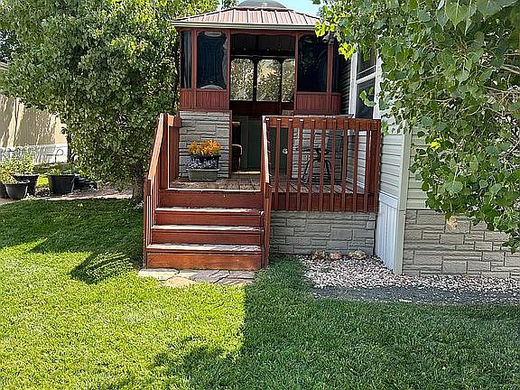 Manufactured home in Cloverleaf mobile home park drywall 2 x 6 walls upgraded sinks tile paint landscaping two accessory buildings 12 200 square-foot heat and air front deck gazebo very quiet. Nice neighborhood house has also vaulted ceilings.