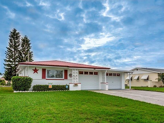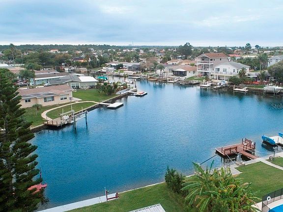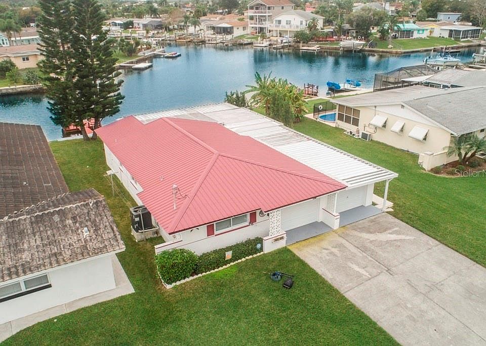 LOCATION, LOCATION, LOCATION!!! Gulf Harbors is one of the most desirable areas to purchase a waterfront home! Start your well-deserved tropical Gulf waterfront lifestyle in this updated 2 bd 1.5 bath, 2 car garage home with separate storage room. And let's not forget the Metal Roof!!! This home also boasts a lovely covered Lanai to ensure you enjoy your evenings overlooking the water. There is also an additional Den or Game Room permitted that could easily be changed into a 3rd bedroom and still have enough room for 2 walk-in closets. AC 4-5 years. Waterfront is 55ft and backyard has room for a pool. Enjoy sitting on your 10 x 15 floating dock or hop in your boat and be on the Gulf in just 10 minutes and enjoy all the Waterfront Restaurants right around the corner. Gulf Harbors neighborhood has 2 private Boat Ramps and their own private beach with 21 cabanas! Come enjoy the sunset every night and meet your neighbors. You'll love living here with the gorgeous all-natural islands that begin right off Gulf Harbors with Anclote Key, stringing to Honeymoon, Caladesi, Clearwater - rated one of the nation's best beaches. Great fishing, island exploring, shelling and water sports. CASH ONLY -See Disclosures: Storm Drain/Culvert runs under additions (all permitted).