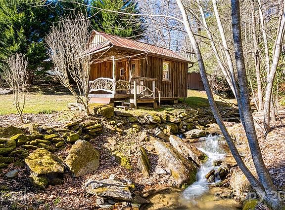 Rustic cabin and an additional single room cottage next to a stream along with a tractor shed gives a new owner lots of possibilities. Create an artist space, affordable mountain getaway or just live year around, the possibilities are endless. Good sun light for gardens, easy to maintain yard, great level property and only 25 minutes from downtown Asheville? Get away to your mini retreat on your own private rushing stream to lull you to sleep every night in the cool mountain air? How about some of the best North Carolina mountain hiking trails you can literally walk to? Easy access on Hwy 74? This is it. Don't miss this opportunity to own this fantastic rental or small home in the mountains only 25 minutes to downtown Asheville, 35 minutes to Hendersonville. Running creek all along one side of the property with Mountain Laurel and Trees. Bearwallow trail and Upper Hickory Nut trails within walking distance. Would make a great rental.