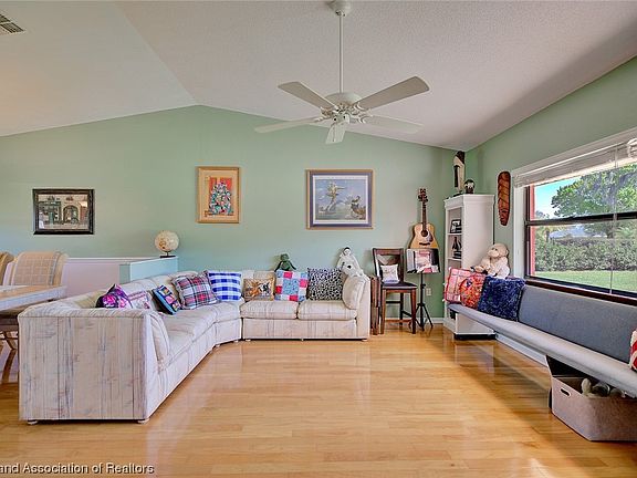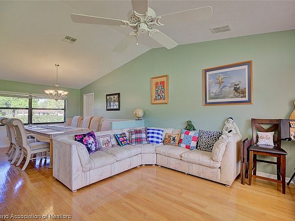 Admired by many Golf Hammock residents, visitors, and golfers - this stunning, Key West style POOL HOME is now ready for new owners to fully indulge in all of the amenities perfect for entertaining and comfortable living that it has to offer! Arriving at the home and entering into the driveway, the unique curb appeal offered by the freshly painted exterior and recent stone rock landscaping paired with the BRAND NEW 2024 Roof will definitely impress you! Your own slice of domestic paradise directly on a large 1/2 acre of privacy hedge lined land in one of the best neighborhoods that Sebring, FL offers with over 2,100 square feet of living space alone containing 3 spacious bedrooms on a split floor plan and 2 full bathrooms. Entering into the home through the screened-in, double door front entryway, an inviting 16'x14' front living room with 11' high vaulted ceilings and designated dining room with brushed nickel chandelier lighting will surely impress you! The generously sized primary bedroom suite contains huge walk-in closets and a spotlessly clean en-suite bathroom complete with a separated fully tiled shower, a luxurious jetted tub, impressively sized cultured marble dual sink vanity, PLUS one of 2 skylights offered in the home! The oversized centrally located kitchen boasts copious amounts of counterspace/cabinetry, a built-in desk, all white appliances, and French door access into the back patio screened-in pool area with covered back porch. Of course, this wonderful Florida oasis features a beautiful heated in-ground saltwater pool with both solar & electrical heat sources to enjoy year-round! The two secondary bedrooms and 2nd full bathroom with shower/tub combo are located on the opposite side of the home near the 15'x18' family room providing extra privacy for visiting guests. Beautiful, authentic Hardwood and ceramic tile flooring offered throughout the home. Super convenient interior laundry room with washer & dryer included located adjacent to the oversized 2 car garage with supplemental golf cart parking. To be sold fully furnished AS IS (with exception of seller's personal items - list available upon request), various styles of window treatments, lighted ceiling fans, full yard irrigation system with multiple zones, NEW 2023 HVAC system, freshly painted interior, and updated electrical panel are among the many extra amenities offered with the home. The residents in this golf cart friendly and socially flourishing neighborhood enjoy the tranquil setting provided by the Tall pines, stately oaks, and tropical palm trees of Golf Hammock in Sebring, FL - a deed restricted community with private roads, tennis court, restaurant, and 18-hole championship Golf course with HOA dues of only $375/year!