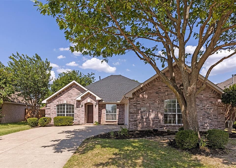 Ideal Frisco location close to Plantation Golf Club! Convenient to 121, this 4 bedroom 2 bath 1 story in Hillcrest Estates is move in ready! 2 living areas and a full dining room. Island in kitchen with a skylight, granite countertops, stainless appliances and the fridge stays! Additional bedrooms split from the main bedroom. First bedroom can be used as an Office. Laminate floors throughout living areas. Freshly painted, carpet replaced 2022. Separate shower, large walk in closet in main bedroom. Roof, gutters and screens replaced 2021.