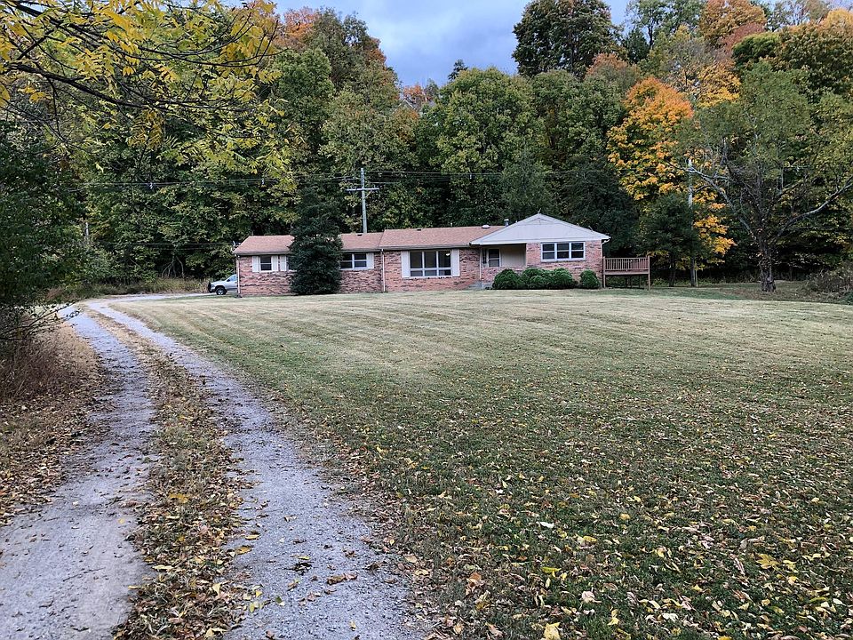 Large ranch-style house and a beautiful lot! Peaceful, fairly secluded area close to the river. This house is tucked behind the houses that front River Road (not visible from River Road). Private drive in wooded area opens up to a beautiful, private setting where seeing wildlife is common. Large windows in the bedrooms and living room take full advantage of natural light and lovely area. Hardwood floors through-out, plenty of storage/closet space. Master bedroom has own bath and deck. Separate family room (fireplace is inoperable). Spacious eat-in kitchen. Two car garage and full basement. Please be aware that this property sits in a possible flood zone. It is possible for the basement to flood. Tenant pays own utilities and trash pick-up Tenant responsible to keep lawn mowed Pets are not allowed No smoking property
