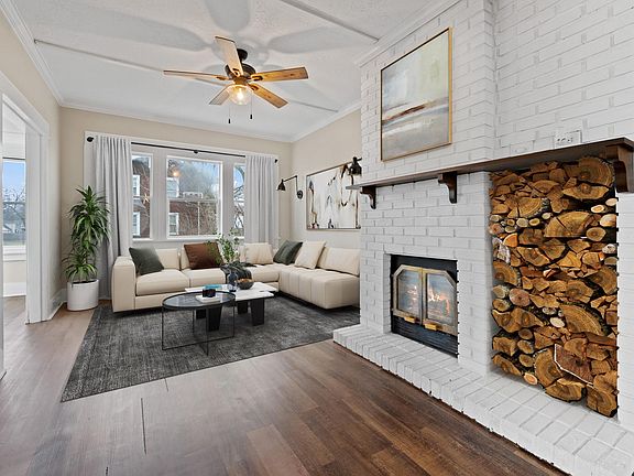 Take a look at this charming 3 Bedroom/2 Full Bath home in the heart of Harrison Hill, a neighborhood established in 1915 which is listed on the National Register of Historic Places. You are greeted by the relaxing covered front porch. Having been extensively remodeled in 2019 - step through the foyer and you will find this home offers a Living Room w/floor to ceiling brick fireplace, Dining Room w/built in bookshelves, Sun Room/Den as a great bonus space, Kitchen with white cabinets plus ALL stainless steel appliances included - and a Bedroom and Full Bath - all of this on the main level. Upstairs you will find a loft/landing area plus two additional Bedrooms and a second Full Bath w/walk in shower. Every room of this home offers great natural light with numerous windows which have been replaced. Basement provides a great amount of storage - plus laundry area. Large 2 Car detached garage - plus large side lot/yard with trees - great place to relax around a fire in warmer seasons. PLUS the neighborhood was platted with a park/playground area next door to the south - offering additional greenspace to enjoy! (See attached GIS Map) Remodel in 2019 included Bathrooms & Kitchen, roof, flooring and central air. In the heart of the '07 - easy walks or bike rides to Foster Park and the Friendly Fox - plus just minutes from Downtown by bike or car. Schedule your showing today! (some of the listing photos are virtually staged)