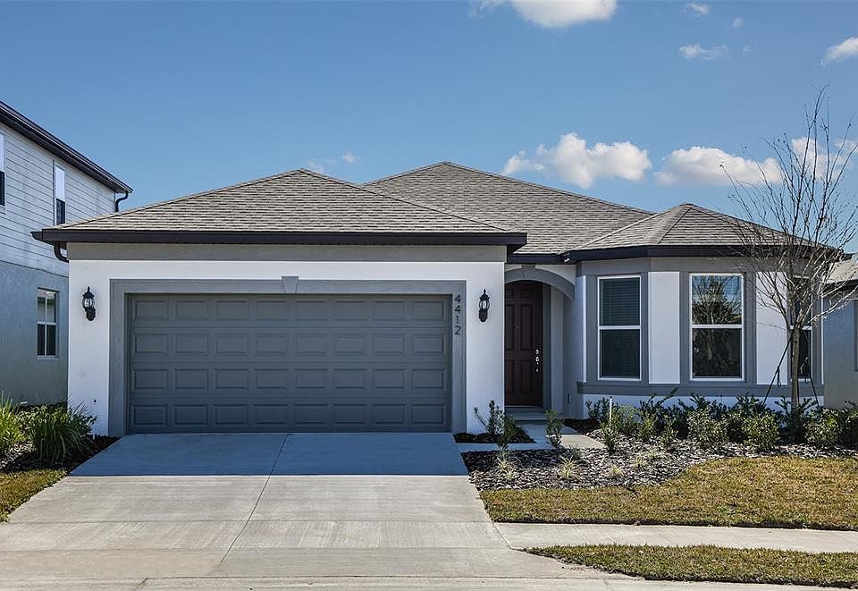 One or more photo(s) has been virtually staged. Move In Ready NOW! Pulte Homes is Selling in Marion Ranch! Enjoy all the benefits of a new construction home in this highly amenitized community located in Ocala, FL. This new community will feature a resort-style pool with open cabanas, a clubhouse, a fitness center, a playground, sports courts, and much more! Plus, with close proximity to I-75 and a quick commute to shopping, entertaining, and dining – you’ll love coming home! With an open-concept home design, this popular Medina floor plan has all the upgraded finishes you've been looking for. The gourmet kitchen showcases a spacious center island with a large single-bowl sink, white cabinets, 3cm quartz countertops with an 8”x9” white hexagon tiled backsplash, and Whirlpool stainless steel appliances including a dishwasher, built-in oven and microwave, and a stovetop with range hood. The bathrooms have matching white cabinets, quartz countertops, comfort-height commodes and dual sinks, a linen closet, a private commode, and a super walk-in shower in the Owner's bath. Luxury vinyl plank flooring is in the main living areas, 12” x 24” tile is in the baths and laundry room, and stain-resistant carpet is in the bedrooms. This home makes great use of space with a versatile enclosed flex room, a convenient laundry room with additional storage in the HVAC closet, an oversized gathering room, and a 2-car garage with an electric car charging outlet. Additional upgrades include 4 LED downlights in the gathering room, pendant prewiring in the kitchen, upgraded door hardware, and a Smart Home technology package with a video doorbell.