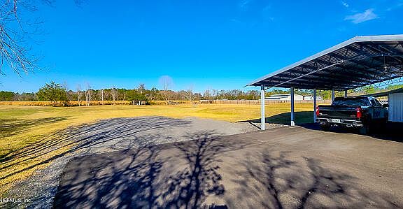 Cozy home on an acre of land looking for new owners! Home is move in ready; newly remodeled; nice open layout with plenty of space and a huge yard! Home is located close to Callahan but still on the outskirts of Jax to access all of the conveniences of River City Marketplace & the interstate interchanges. Features include a large family room with a fireplace; kitchen with lots of cabinet space and a breakfast bar; separate dining room; inside laundry, oversized master bedroom with walk-in closet; master bath has a garden soaker tub & separate stall shower with his & her vanity sinks; split bedroom pattern; plus a storage shed for lawn equip; double car carport w/two additional spots to park; covered deck across the back of the home perfect for entertaining. This home is a must see