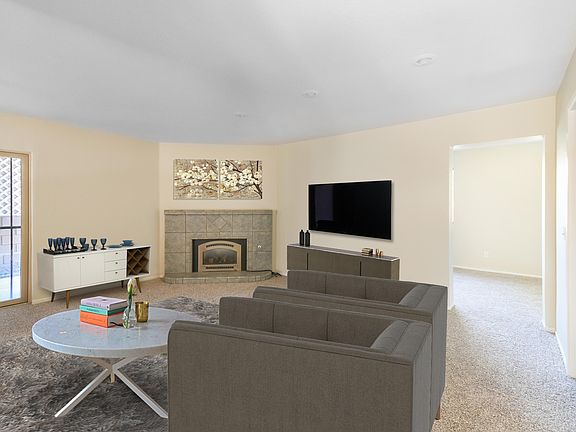 Amazing move in ready home that looks amazing. It starts with beautiful landscaped grounds and it keeps going with new interior paint, new carpet, and new fixtures. New custom tile in the entry, kitchen, living room, and all bathrooms. Beautiful kitchen with a ton of cabinet and countertop space, new granite countertops, new stainless steel sink and faucet, breakfast bar, lots of countertop space, new tiled floors, and new stainless steel appliances. Super clean bedrooms with new closet doors and fixtures. High ceilings, metal garage door, two living spaces, downstairs bedroom, formal dining room, wood burning fireplace, and so much more. Large master with private bathroom, designer bathroom tile, his and her sinks, and large closet. Great location, close to schools and shopping down the street. Two patios in the back with tons of room to run around. Come by today!!