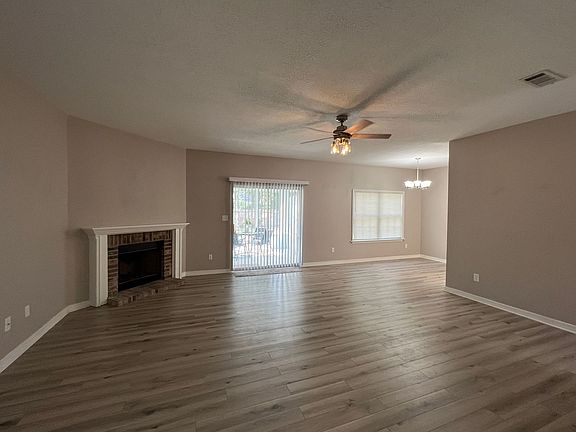 Just a short drive up Woodbine Rd, you'll discover this beautifully done 3 bedroom home. Minutes from shopping and within easy reach of Hwy 90, you'll quickly fall in love with how easy this home makes it to access Pensacola. Inside, you'll discover gorgeous, wood laminate flooring that covers the entire home. The foyer encourages you onward towards the spacious living room with brick surround fireplace that makes a great focal point for the room. The galley style kitchen offers a full suite of appliances and plenty of cabinet space. Also nearby in the casual dining space with a large window that provides a great view of the back yard. The owner's suite provides a pair of windows that frame out a perfect space for your bed and provides ample room for dressers and other furniture. Plus, in the adjoining bathroom you'll find dual vanities, a tile surround tub and shower combo, and double, walk-in closets. The sunroom with its tv mount is an ideal spot for enjoying game days, and an additional patio area just beyond is a great spot for grilling. Plus, as cooler weather approaches, you'll definitely want to make the most of the fire pit in your fenced backyard. Contact our office today to check it out.