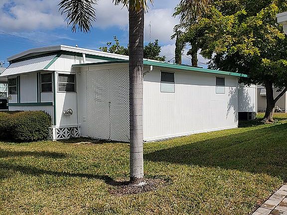 2 bedroom, 1 1/2 bath manufactured home. Recently painted walls and ceilings. Laminate floor throughout. Walk-in closet. Central A/C, 3 ton unit, 3 years old. There are 3 storage sheds, one that is large enough to convert into a room, if desired. Close to restaurants and shopping. On the bus line. Well maintained park. Move-in ready.