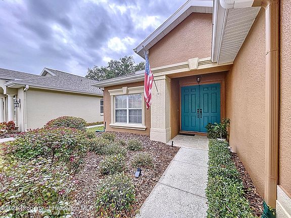 A brand new roof now tops this beautiful home! This lovely, well maintained 3/2/2 home is located on hole 8 of the 18 hole golf course in gated Hernando Oaks. Enter though covered double doors into a wide tiled foyer. Fantastic floor plan features a formal dining room, huge great room and big eat-in kitchen. Kitchen is a chef's dream with all new 2025 stainless steel appliances including a natural gas stove! Heat and water heater are also powered by gas. Good sized pantry, loads of cabinets, tile backsplash, new faucet, Corian counters and a center island. Great room is big and open, with gleaming wood laminate flooring, 2 ceiling fans, high designer windows which add natural light while allowing furniture placement beneath, and sliders to Florida room. Split bedroom plan. Master bedroom is spacious, with 2 walk in closets and ceiling fan. En-suite bathroom has garden tub, step in tiled shower with glass block, dual sinks, Corian counter, and separate commode. Inside laundry room off kitchen has a washer and dryer that stay, more cabinets and a utility sink. Florida room has stunning view of the golf course through acrylic windows, which have never been hit by a golf ball in the 7 years these sellers have lived here! Senica provides maintenance service to the A/C unit twice yearly. There is also a walking trail behind this home, for fresh air and exercise. Maintenance payment includes lawn care (weeding, feeding, cutting and shrub care) irrigation assistance and house exterior painting. Community amenities include social membership, restaurant, pickleball and Pro shop. Don't miss the chance to call this beauty your next home, call to arrange your private showing today! Buyers can imagine this home unfurnished when viewing the Matterport virtual tour by clicking the chair in the lower left corner!