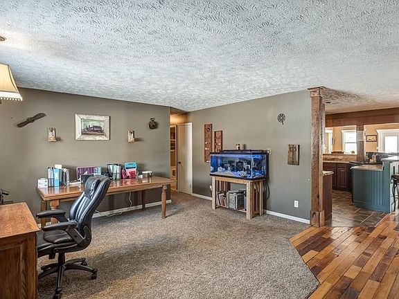Gorgeous ranch situated on an expansive DOUBLE LOT, beautifully landscaped w/perennials & rock. *Additional 990 sq ft* Shaker siding accents coupled w/an attractive color scheme makes this HOME stand out! New Marvin Wood Windows throughout. Inviting entry w/mix of ceramic tile & wood floor, living rm currently being used as an office. Notice picturesque window allowing lots of light. Desirable open floor plan, wood floors. Every detail was carefully selected & quality crafted. Kitchen offers ceramic tiling, rich cabinetry, exposed BARN WOOD & HUGE 6-8 person BREAKFAST BAR! Dining Rm/Sitting Rm has woodburning fireplace, which offers supplemental heat source. Generously-sized GREAT ROOM w/french doors & exposed BARN BEAMS. One of a kind MASTER- custom wood ceiling, sliding barn doors, walk-in closet. Ultimate master bath w/custom vanity, HUGE walk-in shower dual shower head. Updates-exterior doors, ROOF, water heater, filtration system, 400amp power service & boxes, siding & gutters.