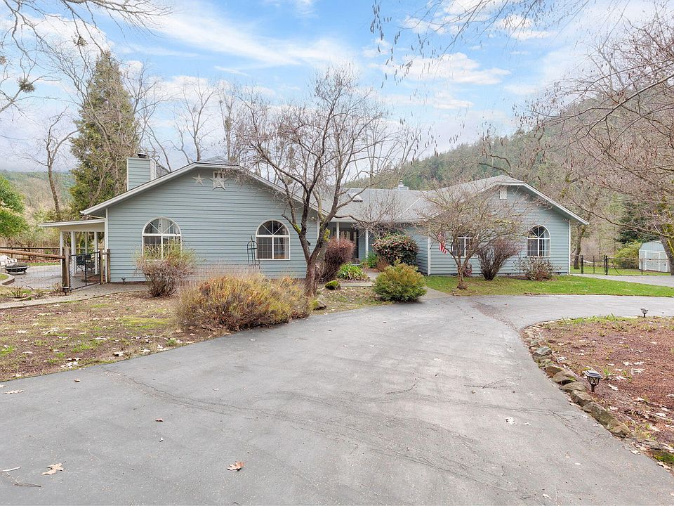 Amazing River front Property located along the High Bank side of the Rogue River. Your dream home awaits you with this large 2820 Sq Ft 3bd 2 bath river house with gated entry and extensive paved driveway. The tiled kitchen is entertainment friendly and the extra-large den screams Sunday afternoon football! Lounge while soaking up the heat welling out from the wood burning stove. Throw a holiday bash setting goodies on the granite counters. The main living room provides a beautiful scene including the abundant local wildlife of Deer and turkeys that cruise the lawn. Prestine hardwood floors throughout and a gorgeous fireplace adorn the living space. A newer Heat pump provides additional heat and ac in the summer. Newer eves, vinyl windows, roof, and water heater are just a few of the upkept items recently replaced. You'll notice the Immaculate detail of daily maintenance and the manicured property throughout. Outstanding irrigationwell with 25gpm and a second well just for the house