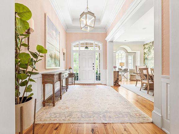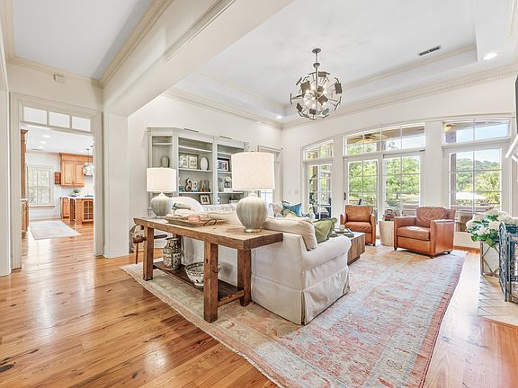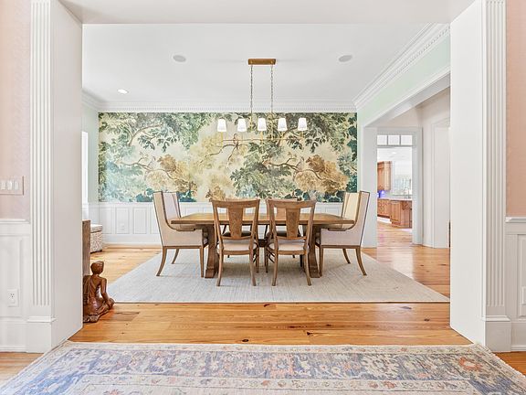 This all brick, custom home is situated on Lake Lachicotte within Wachesaw Plantation Club. 4413 Indigo Ln accommodates every stage of life’s journey. A 4 bedroom, 4.5 bath with a dedicated office and large bonus/recreational room. It exudes timeless charm with its classic architecture, manicured lawn, lake views and picturesque surroundings. Stepping through the front door, you’re greeted by a light-filled foyer designed with an open concept layout that connects living, dining and kitchen areas. Your eyes will be drawn to the craftsmanship of the heart-pine flooring, moldings, trim work, tray ceilings and wainscoting throughout. The beautiful dining room with the accent wall is a wonderful backdrop for family gatherings. The living room is inviting with a gas fireplace flanked by custom built-ins, high tray ceiling and dentil moldings. The heart of the home is the well-appointed kitchen with impressive Wolf appliances, Sub Zero refrigerator, double oven wall, Wolf Gas-stovetop, new quartz countertops & backsplash, new brushed gold hardware, oversized island with pendant lighting, under-cabinet lighting, a built-in desk with overhead cabinets and drawers, pantry and wet bar alcove with a wine refrigerator. The kitchen is a multifunctional space! Adjacent to the kitchen there is a breakfast nook and casual family room. The laundry room is oversized with ample cabinet space. The renovated powder room is ideally adjacent to the kitchen creating accessibility for guest. There are 3 bedrooms downstairs. As you enter the primary bedroom, wallpaper graces the spacious room adding visual interest and the wainscoting creates a sense of depth. There is also a walk-in closet with organized shelving systems. The primary bathroom has been renovated with 2 restoration hardware vanities & mirrors, new tiled shower, a pocket door added for privacy and a freestanding soaking tub. Sleek, modern design meets timeless elegance in this space! Two other bedrooms on the main level seamlessly connect through a Jack and Jill which was created to make the bathroom larger including a new vanity, tiled shower/tub combo and fixtures. Many features of this home have been recently updated including fresh interior paint three months ago, Thibaut wallpaper in the foyer, primary bedroom, bathroom & powder room, all new bathroom vanity countertops, new light fixtures throughout, new Rinnai tankless water heater and new hardware on all doors. A heart-pine floored staircase leads upstairs where you will find an office/flex room which could be used as an office or additional bedroom. The owners created a full bathroom in the upstairs hallway which was once an unfinished closet-Truly showcasing innovation design and efficiency! There is a true guest room retreat with built-in cabinetry, walk-in closet and ensuite bathroom. For families, there's a dedicated, huge playroom or bonus space that can easily be transformed into a gym or guest room as needs change over time. Plenty of storage solutions in this home, many closets were added with closet-maid system to blend functionally with style. The screened porch is a versatile space, a perfect balance of indoor comfort and outdoor ambiance offering new tile flooring and a ceiling fan. Walk outside to find your private oasis. An expansive, fenced-in backyard with three gates overlooking the lake. Enjoy two outdoor patios, perfect for dining & sunsets over the water. Whether hosting lively gatherings or enjoying solitude, this outdoor space is a place to reconnect with natures beauty and privacy. Other amazing highlights include a 2 car garage with built-in cabinets, ADT security system, Sonos sound system throughout the dwelling and porch, reverse osmosis water filtration system, brand new water filtration system, smart lights throughout main living areas, EV charging port (Tesla), French drainage and irrigation system. Walking distance to the neighborhood park, dog park & pickle ball courts. MUST SEE!