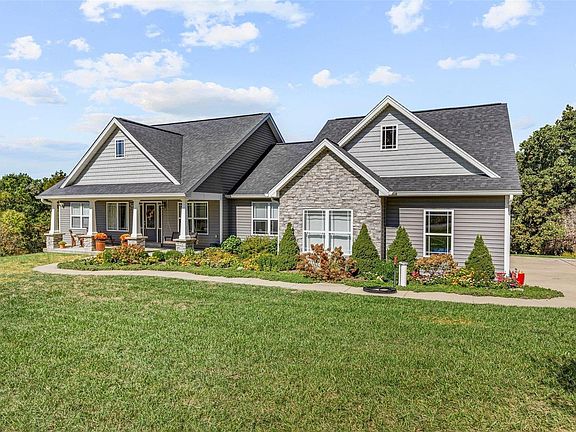 WOW! Move right on in! Beautiful custom-built ranch home on 3 acres in a private/gated subdivision. Stunning curb appeal w/large covered front porch & stone accents. Walk into the spacious open living/kitchen/dining area. Vaulted ceilings, gas fireplace. Amazing kitchen w/large center island, quartz countertops, stainless appliances, hidden walk-in pantry & custom cabinetry. Walk out on the covered deck from dining room. Divided floor plan. Primary bedroom suite w/double sided walk-in closet, double sinks, soaker tub & walk in shower. Main floor laundry & mud room. Newly finished walk-out basement. Huge family/rec room, office area, computer nook, wet bar w/ quartz counters & custom cabinets, ceiling beams, 4th bedroom, full bath & storage areas. 2 car oversized garage w/side entry. Beautiful manicured yard which is frequented by area wildlife. This home has all of this and too much more to mention. It is ready for new owners. Additional Rooms: Mud Room