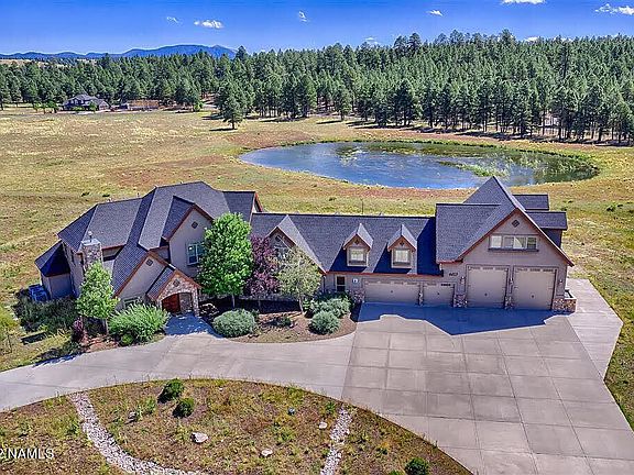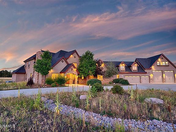 Wonderful Panoramic San Francisco Peak Views from this Magnificent Estate situated on over 2acres Bordering dedicated open space!! Nestled in the Private Desirable Gated Community of A-1 Mountain Ranch, this exquisite Custom home is located adjacent to Forest Service access and is only a short drive from downtown Flagstaff! This spacious Mountain home was professionally designed to maximize views and provide ample space for the whole family and all of your toys, including 2 RV Garage spaces! As you enter the home, the elegant entryway opens up to the Great Room where a wall of windows perfectly frames the panoramic Peak and Forest views, turning the Natural setting into living artwork that fills the house! The large well-appointed chefs kitchen is perfectly situated between multiple gathering areas and the eat-in breakfast area, where an abundance of natural light and panoramic views fill the space. A large Den/Game room adjacent to the kitchen provides easy access to the back patio making it ideal for indoor-outdoor gatherings and entertaining. The spacious primary bedroom is located on the main level and is accompanied by a stylish home office/library. Upstairs includes 5 additional guest suites, a home theatre, an observation deck and additional living spaces that provide extra space for extended family & friends. This beautiful custom home was designed to provide an abundance of comfortable spaces inside and out for family and friends to gather and enjoy, making it the ultimate vacation getaway or primary residence to enjoy all four seasons that Flagstaff and Northern AZ have to offer!! Can be sold fully furnished!